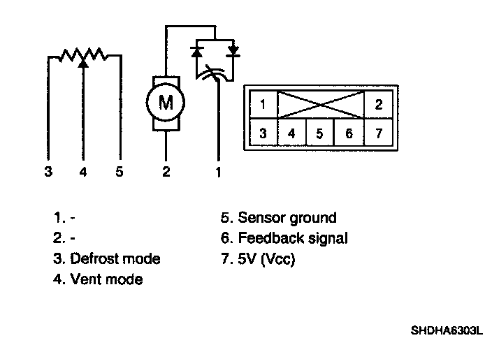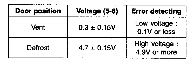 3. Verify that the mode control actuator operates to the defrost mode when connecting 12 V to the terminal 3 and grounding terminal 4.