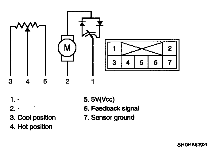3. Verify that the temperature control actuator operates to the hot position when connecting 12 V to the terminal 3 and grounding terminal 4.