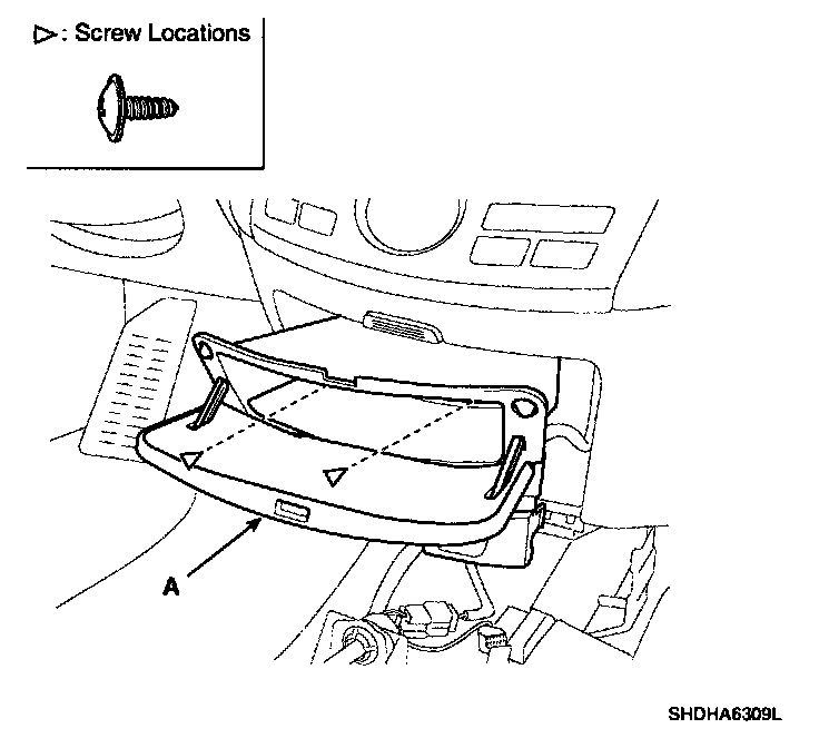 3. After loosening the mounting screw, remove the center facia lower panel (A).