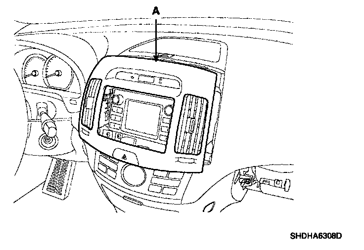 2. After disconnect the mounting clip, remove the center facia panel (A).