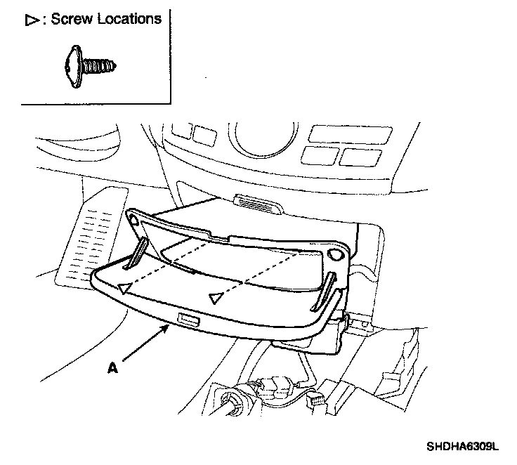 3. After loosening the mounting screw, remove the center facia lower panel (A).