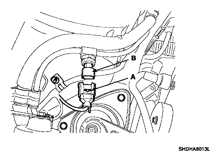 4. Remove the A/C pressure transducer (B).