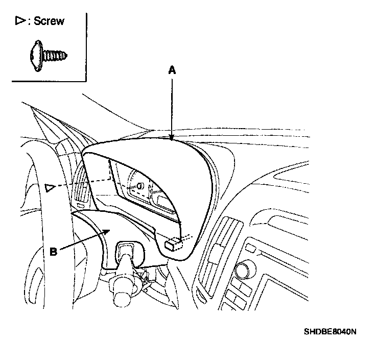 2. Remove the center facia panel (A) and upper shroud (B) after loosening screws.