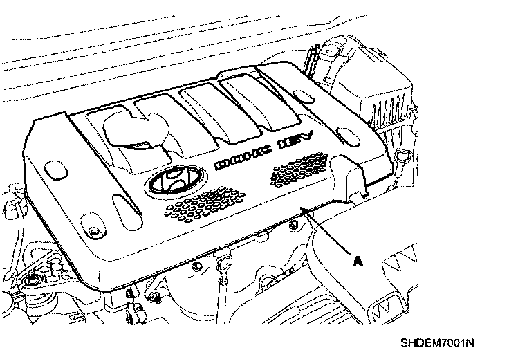 TIMING BELT TENSION ADJUSTMENT1. Remove the engine cover (A).