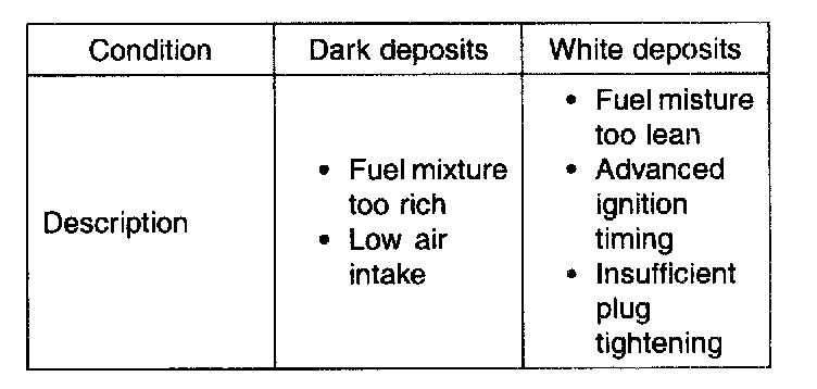 3. Check the spark plugs for the following.