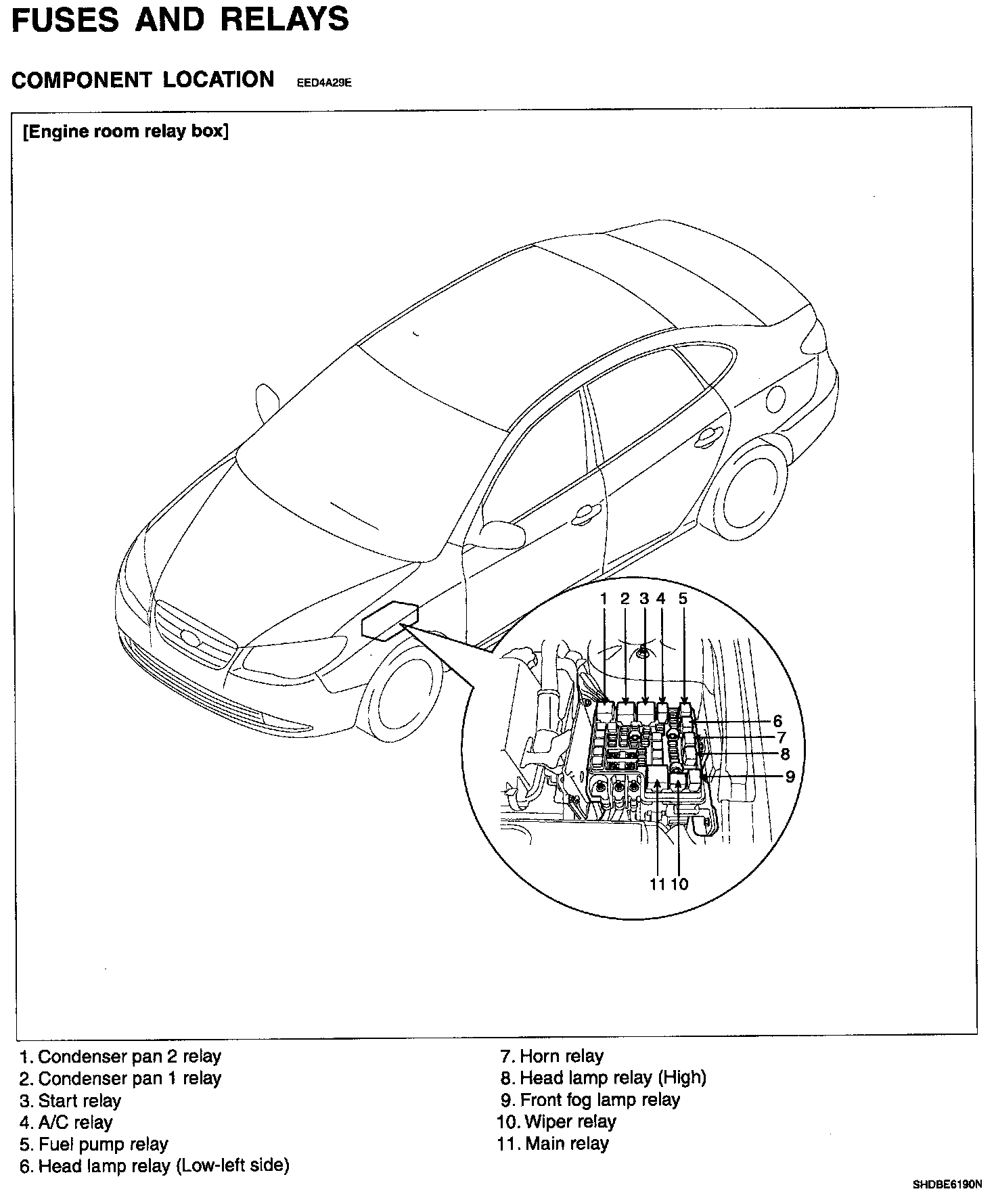 Fuses And Relays (Engine Room Relay Box) - Component Location: