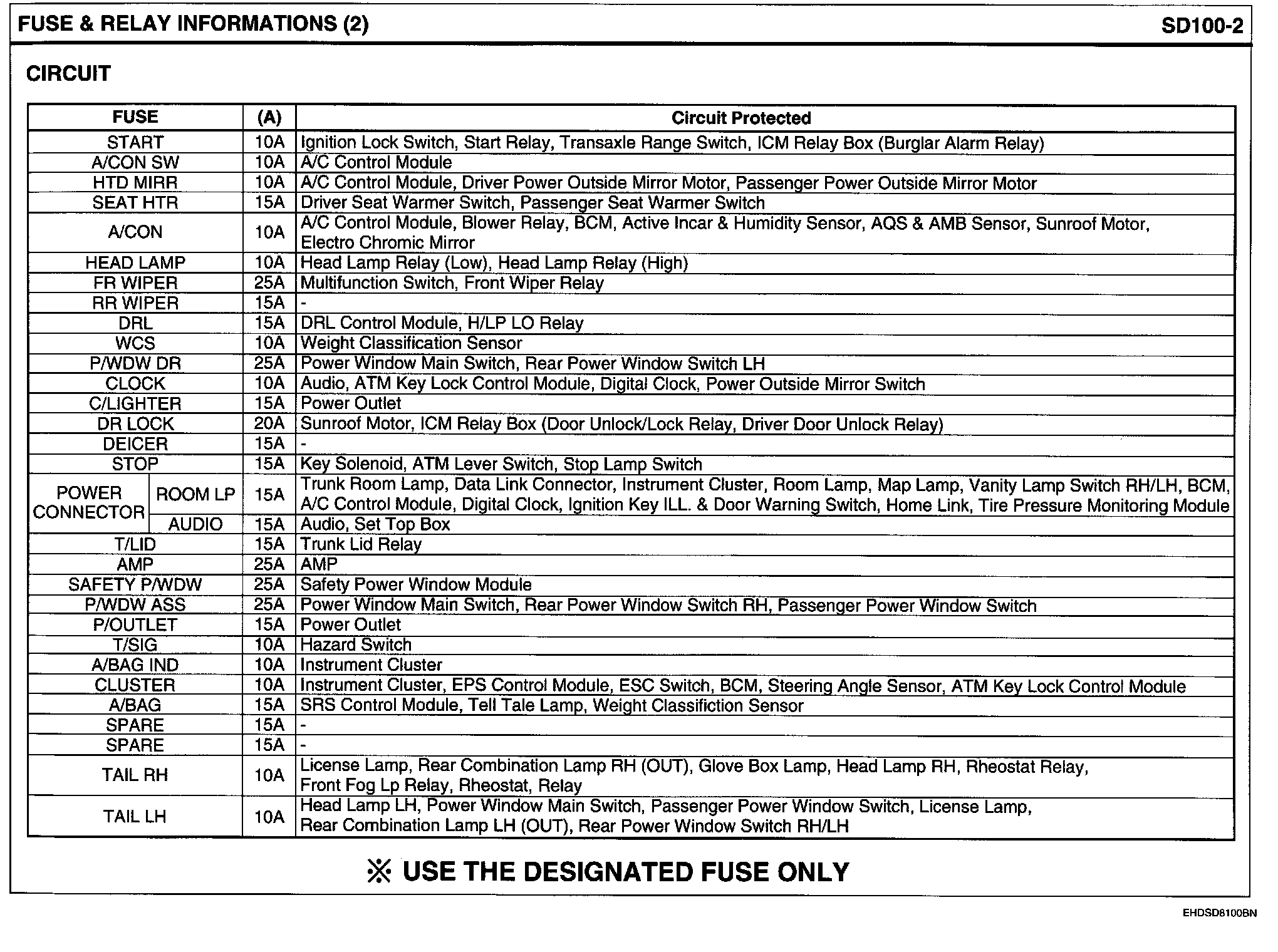 E/R Junction Block Layout Circuit Details: