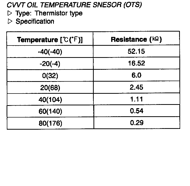 CVVT Oil Temperature Sensor (OTS) - Specification: