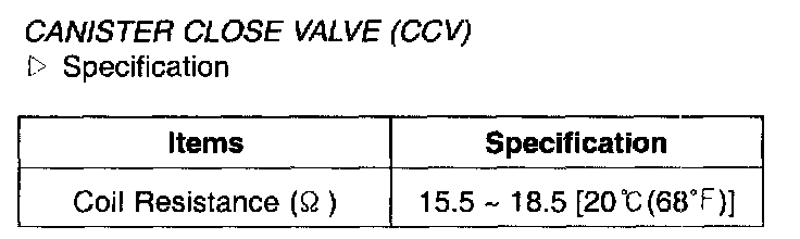 Canister Close Valve (CCV) - Specification: