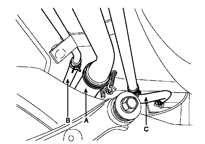 1. Disconnect the fuel filler hose (A), the leveling hose (B) and the vacuum hose (C).