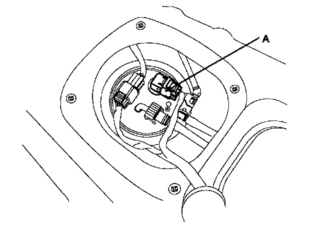 3. Disconnect the fuel pump connector (A).