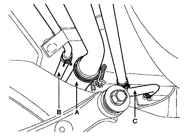 4. Disconnect the fuel filler hose (A), the leveling hose (B) and the vapor hose (C).