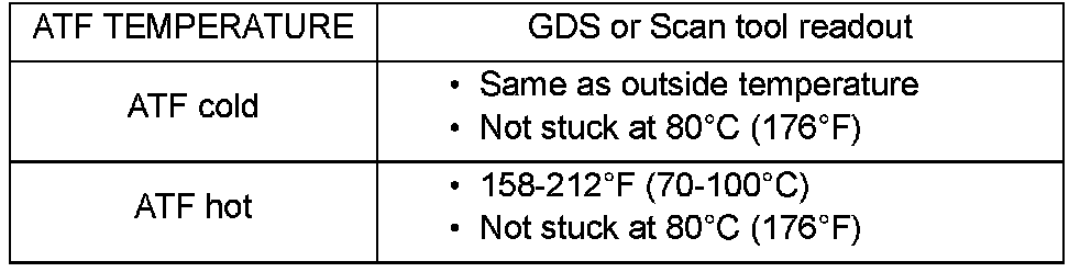 2. Using a Hi-Scan Pro or GDS, select: Automatic Transaxle". "Current Data" and "Fluid Temperature Sensor". Check the fluid temperature readout. The continuity of the wiring harness is good if the GDS or Scan tool reads as shown below: