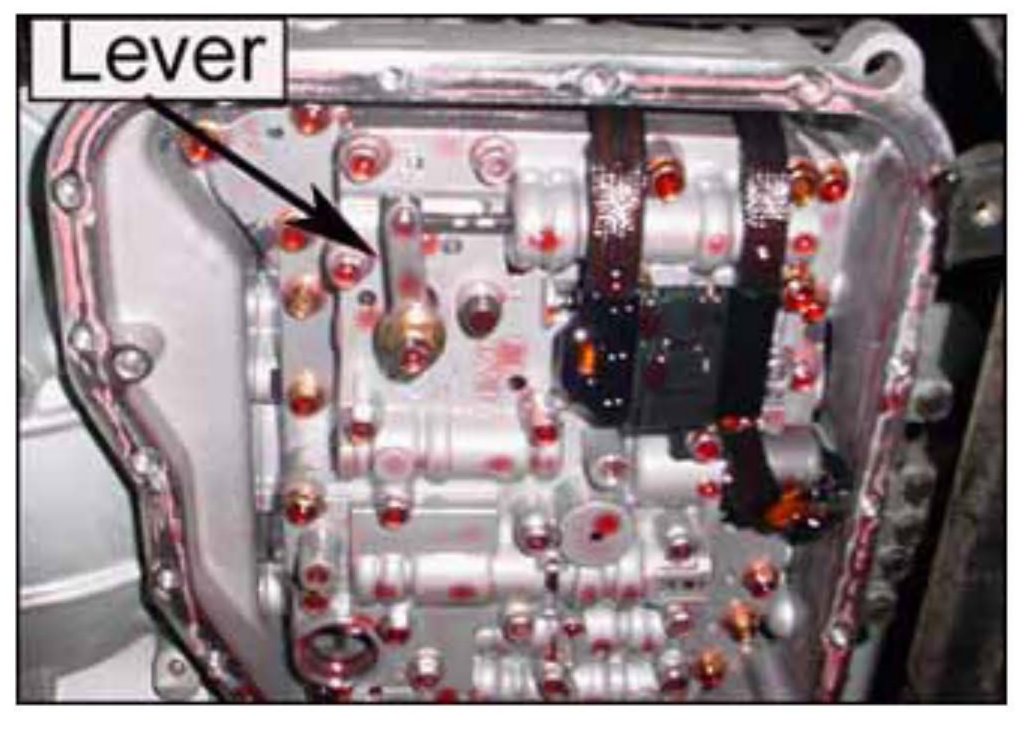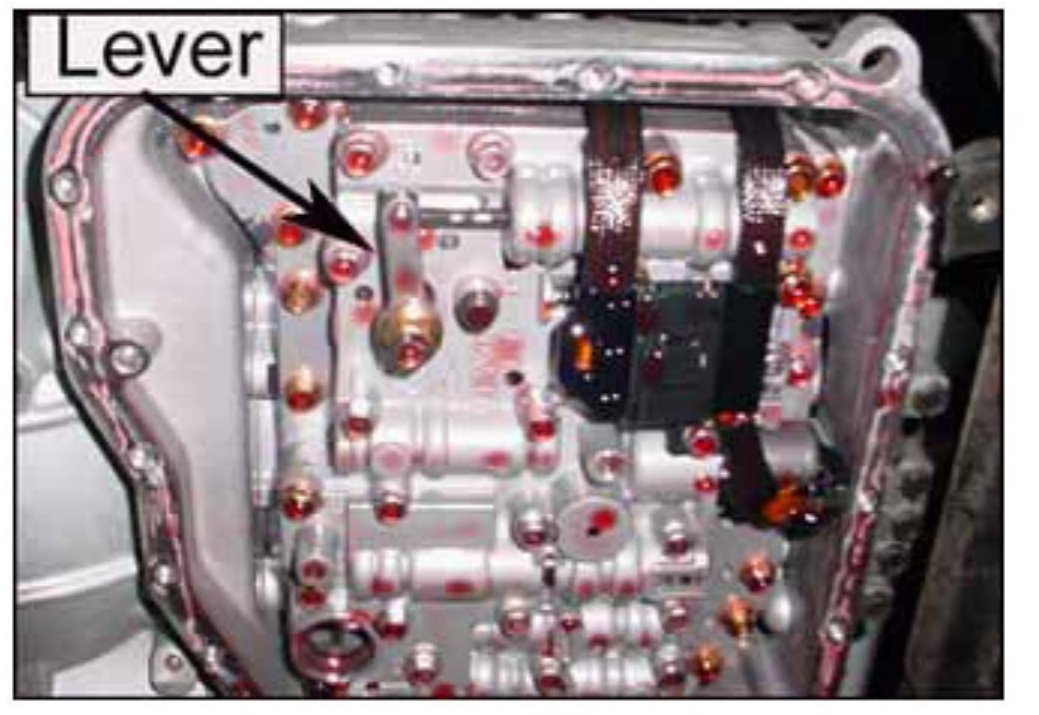 9. Remove the 14 mm nut and remove the manual valve lever.