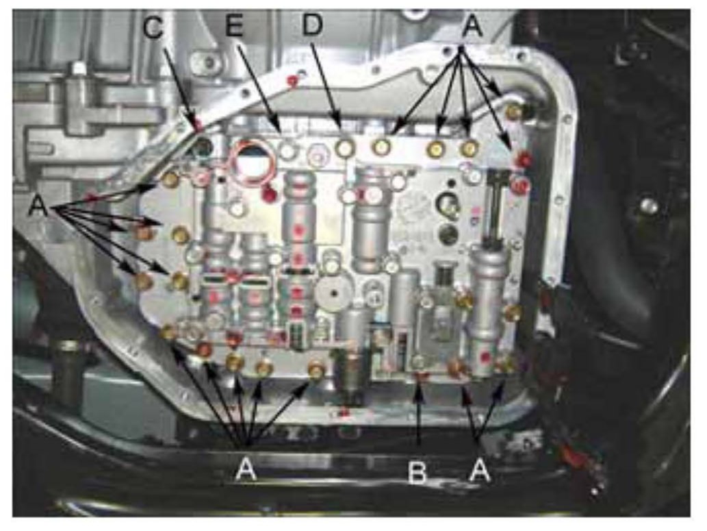 11. Remove the bolts that secure the valve body and carefully lower the valve body.