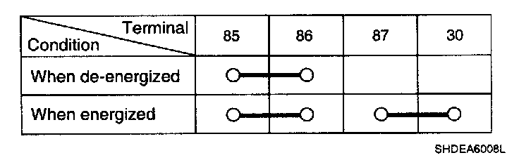 (A) and check continuity between the terminals. If the continuity is not as specified, replace the relay.