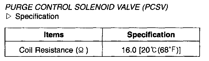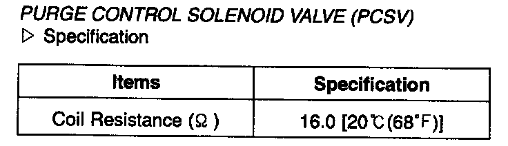 Purge Control Solenoid Valve (PCSV) - Specification: