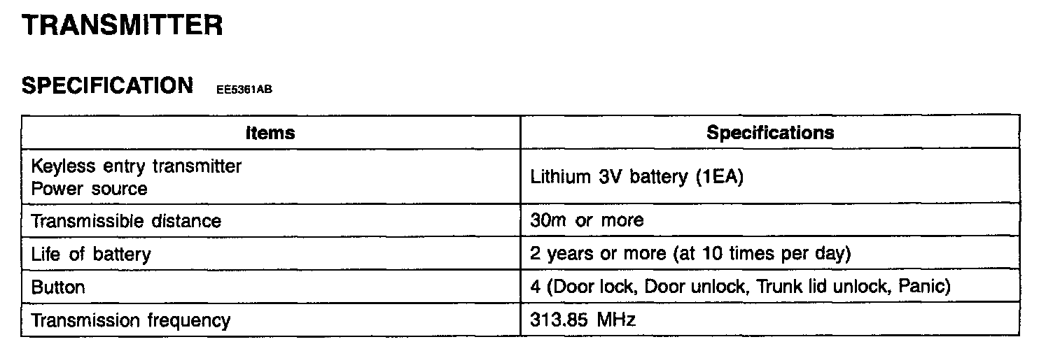 Transmitter - Specification:
