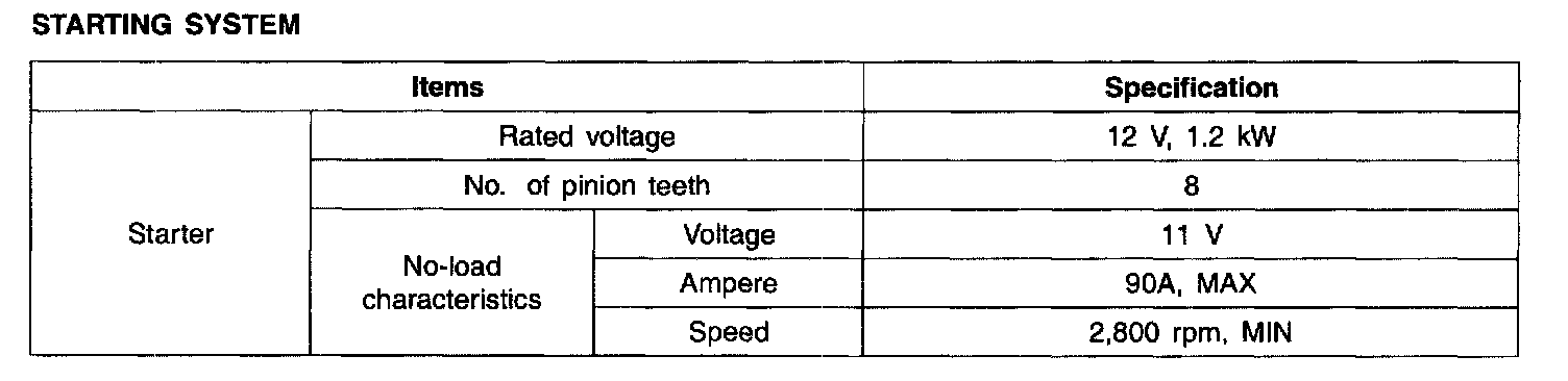 Starting System: Specifications