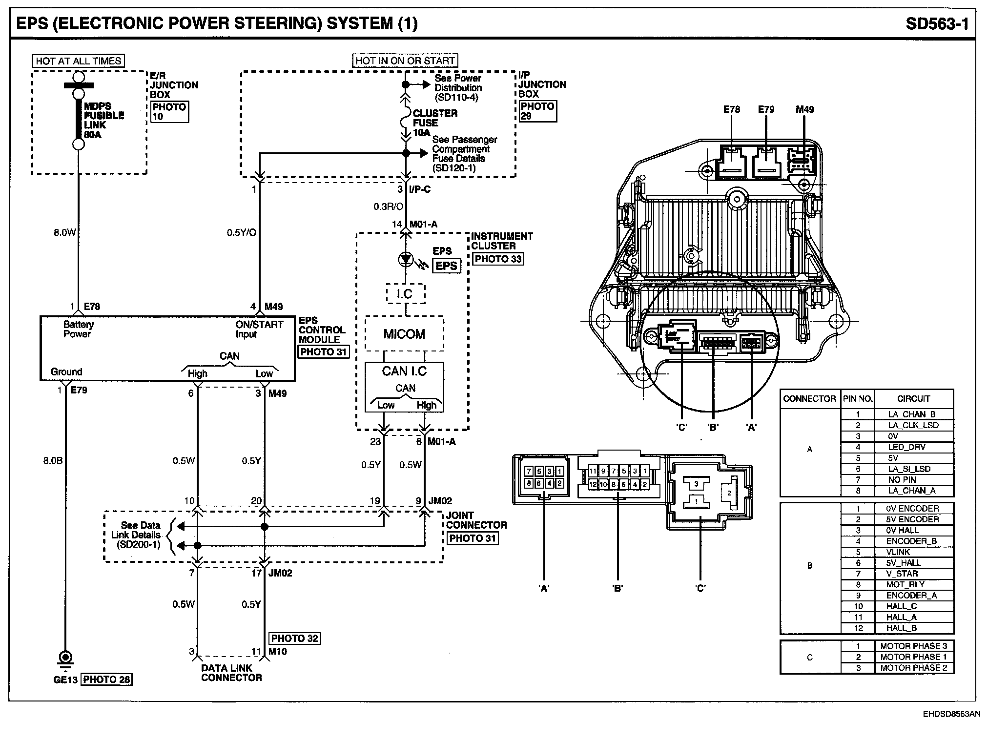 EPS (Electronic Power Steering) System Connector Pin Outs: