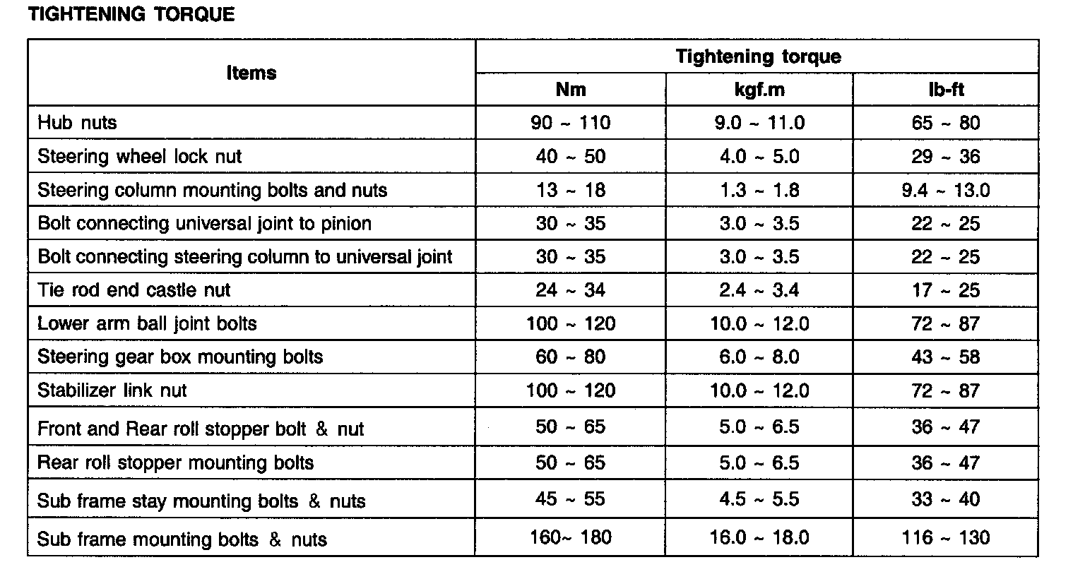 TIGHTENING TORQUE: