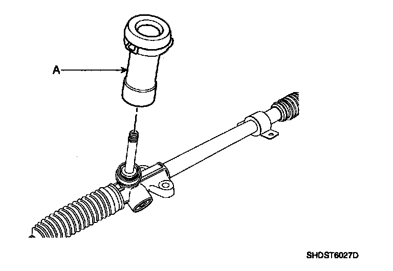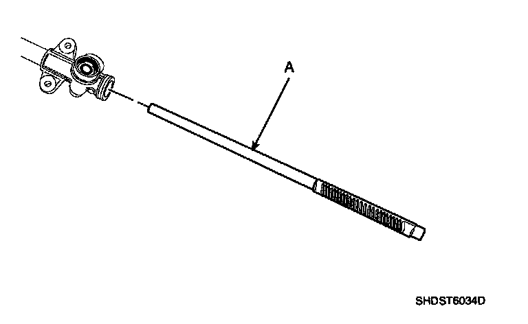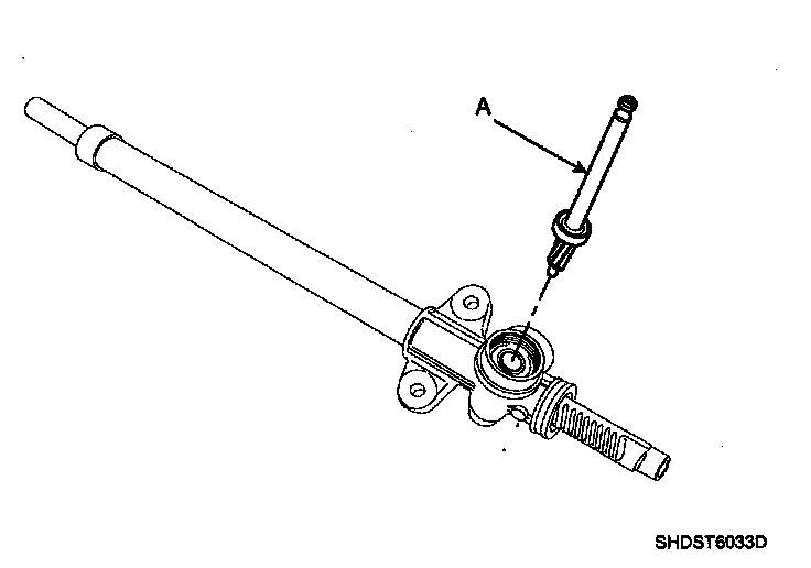 1. Apply the grease to rack year teeth and then insert the rack bar (A) into the rack hosing.