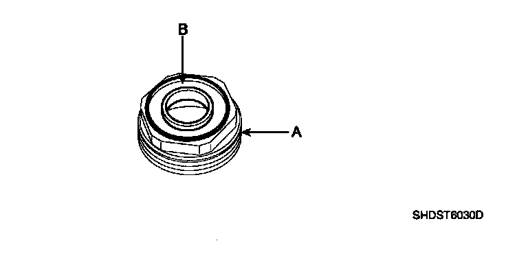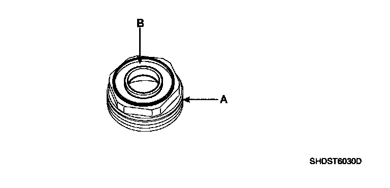 8. Apply the sealant to the thread of the plug and then assemble the pinion plug (A) to the housing.