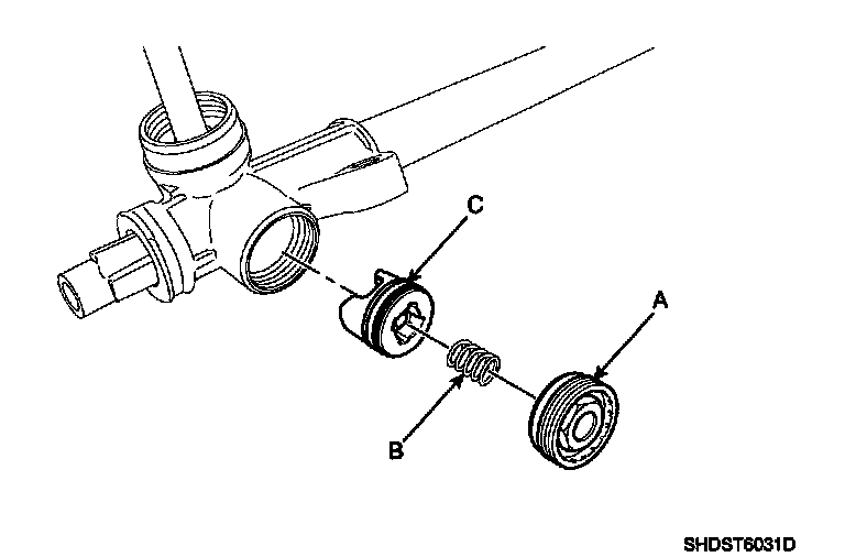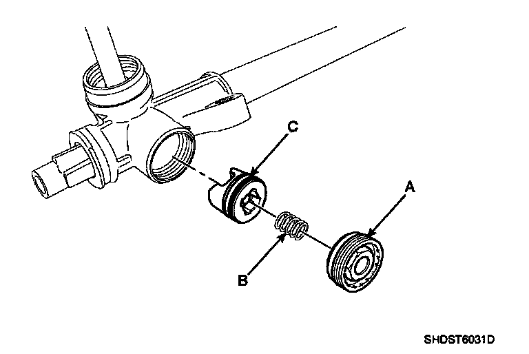 7. Remove the yoke plug (A) and spring (B) and then pull out the support yoke (C).
