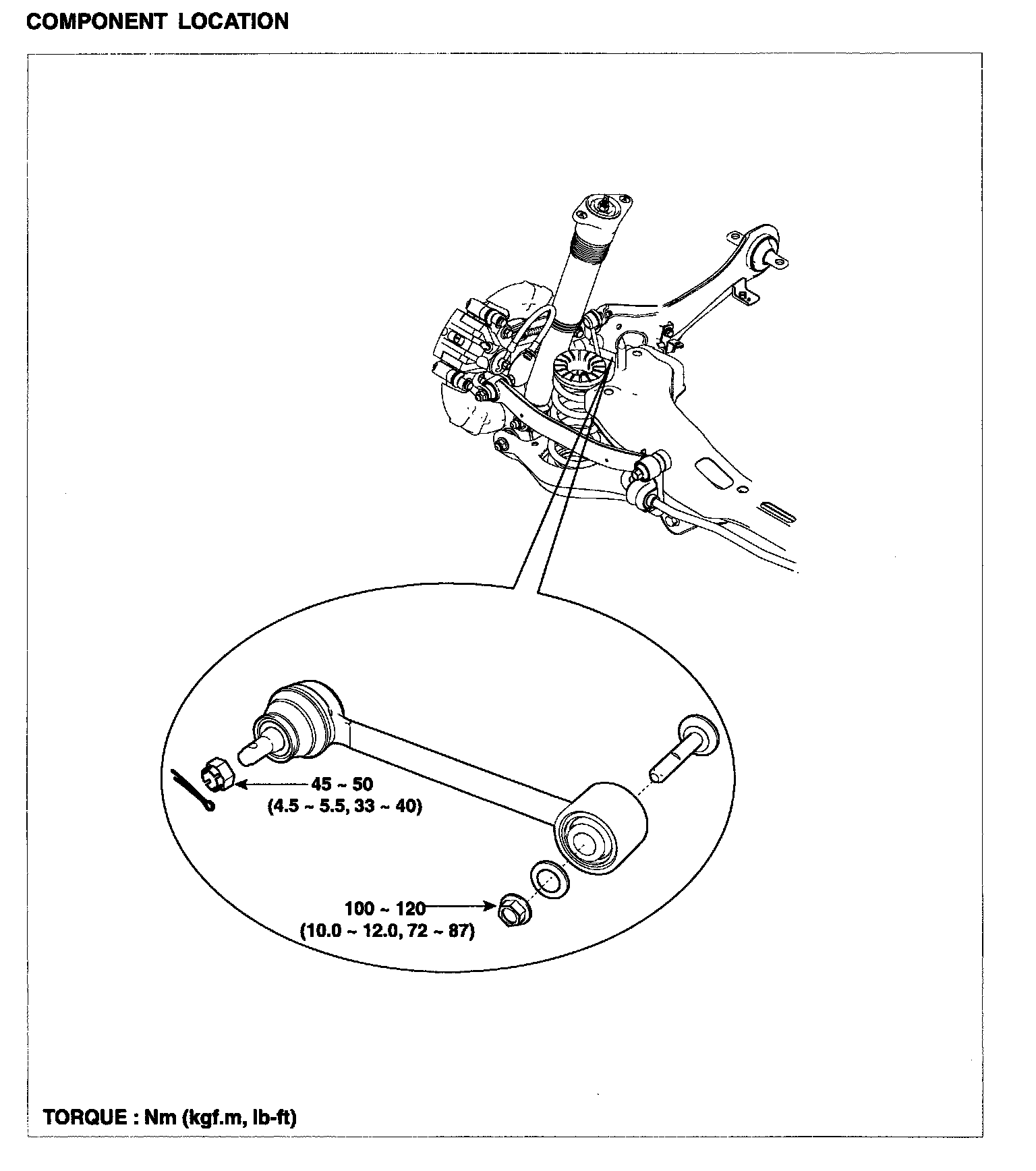 Tightening torque Nm (kgf-m, lb-ft): 45-55 (4.5-5.5, 33-40)