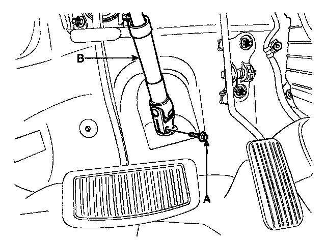 2. Loosen the bolt (A) and then disconnect the universal joint assembly (B) from the pinion of the steering gear box.
