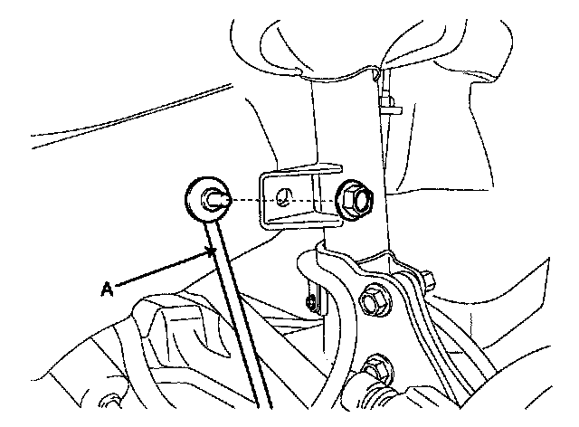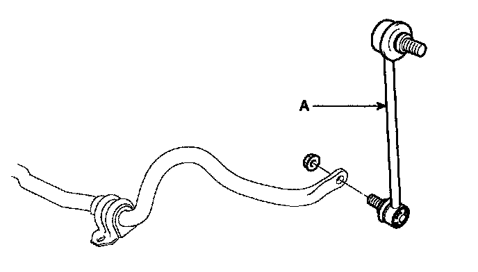 3. Disconnect the stabilizer link (A) from the front strut assembly by loosening the nut.