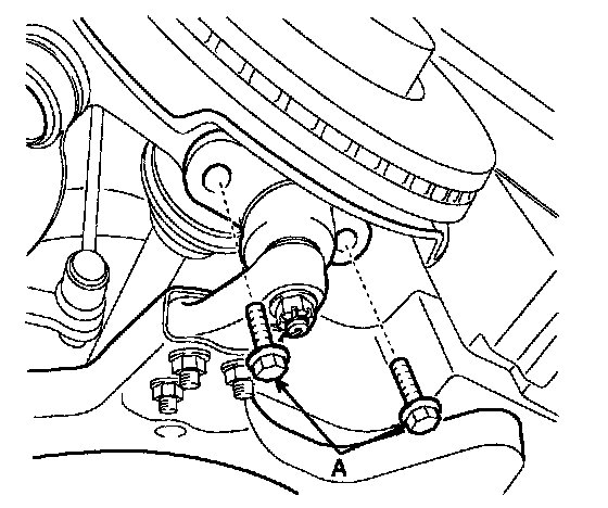 5. Disconnect the front lower arm with the knuckle by loosening the mounting bolts (A).