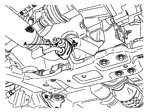 11. Disconnect the stabilizer link (A) with the stabilizer bar by loosening the nut.