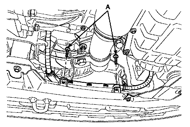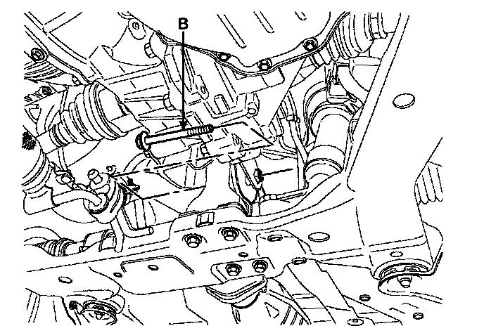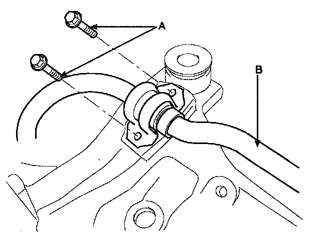 10. Remove stabilizer (B) from the subframe by loosening the bracket mounting bolts (A).