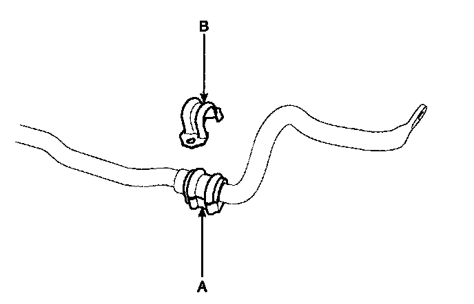 12. Remove the bushing (A) and the bracket (B) from the stabilizer bar.