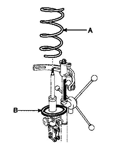 6. Remove the coil spring (A) and the spring lower pad (B).