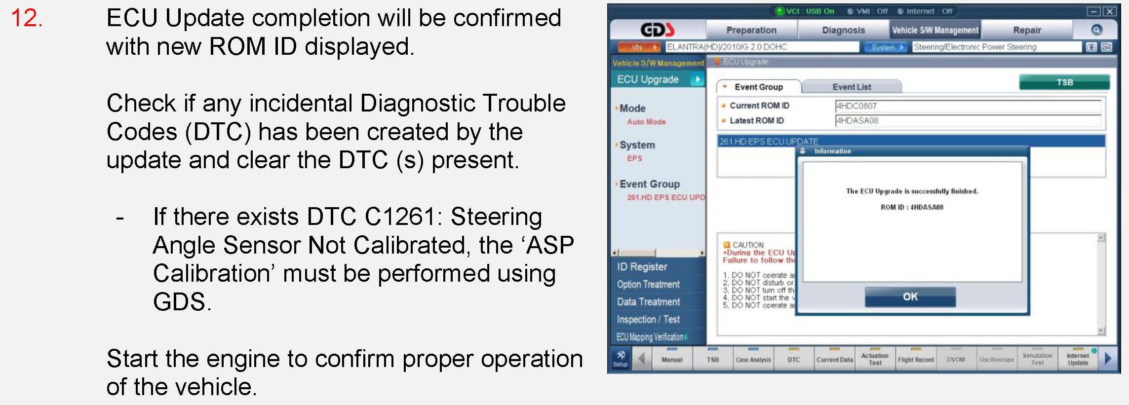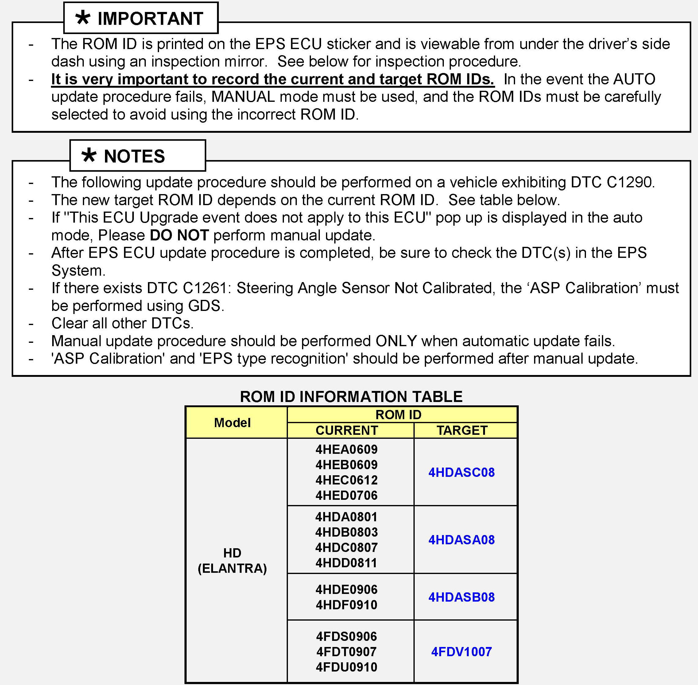 ELANTRA (HD) EPS ECU SOFTWARE UPDATE DTC C1290