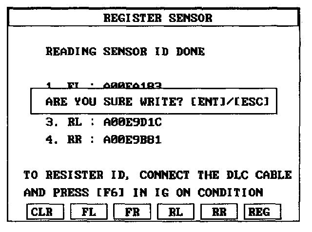 SENSOR INITIATING PROCEDURE1. Read the four sensor's ids starting with sensor 1 (1 normally front left, 2 front right, 3 rear left, 4 rear right).
