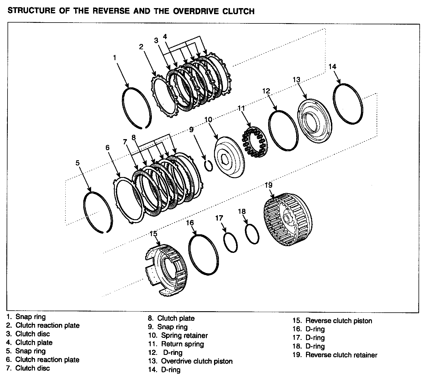 STRUCTURE OF THE REVERSE AND THE OVERDRIVE CLUTCH
