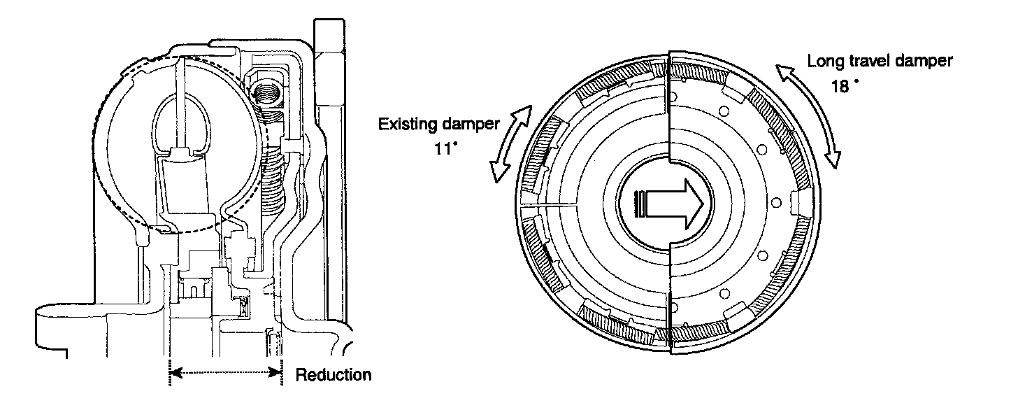 ^ The maximum operating degree of the damper clutch installed inside the transaxle increases from 110 to 180 to improve the engine revolution change reduction capability and the fuel consumption