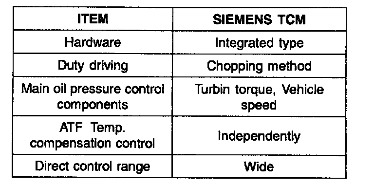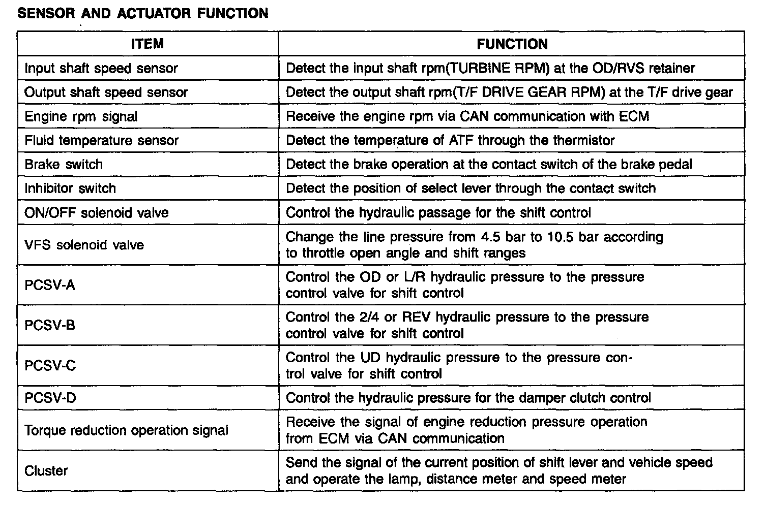 The TCM which is adapted to the new small sized automatic transaxle (A4CF2) is integrated into the ECM and deliver information via CAN communication.