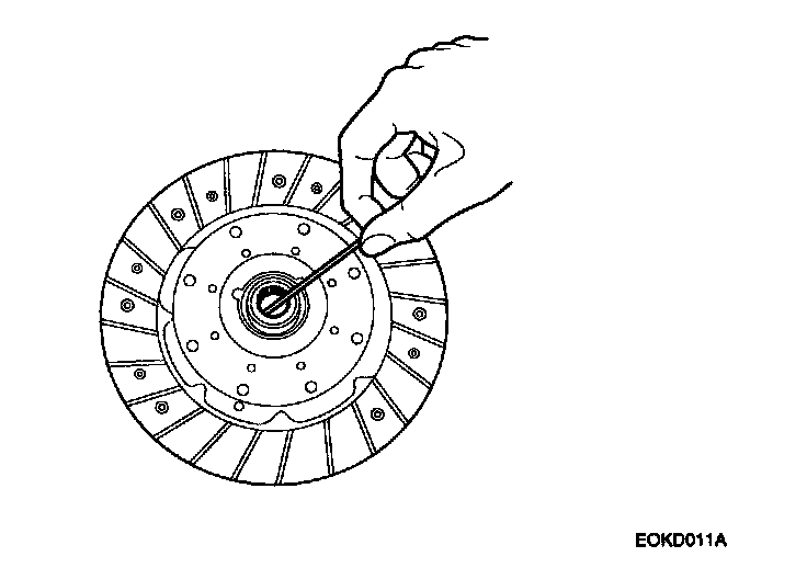 2. Insert the special tool (09411-11000) in the clutch disc to prevent the disc from shifting.