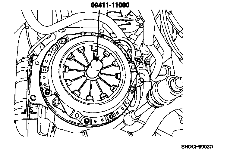 2. Install the clutch disc assembly to the flywheel using the special tool (09411-11000).