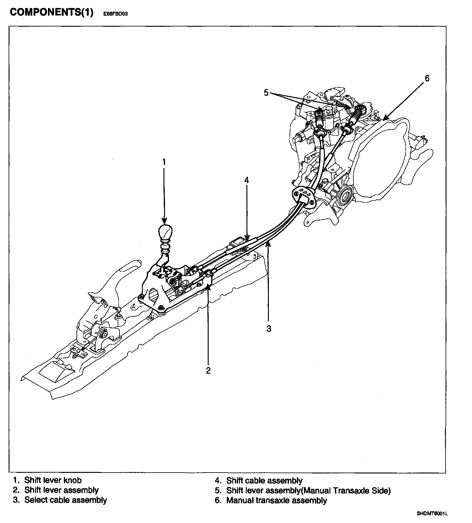 MANUAL TRANSAXLE SHIFT CONTROL SYSTEMCOMPONENTS (1):