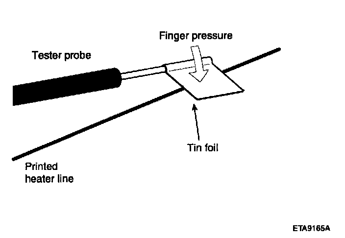 CAUTION: Wrap tin foil around the end of the voltmeter test lead to prevent damaging the heater line. Apply finger pressure on the tin foil, moving the tin foil along the grid line to check for open circuits.