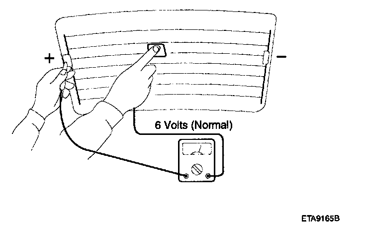 2. If a heater line is burned out between the center point and (+) terminal, the voltmeter will indicate 12 V.