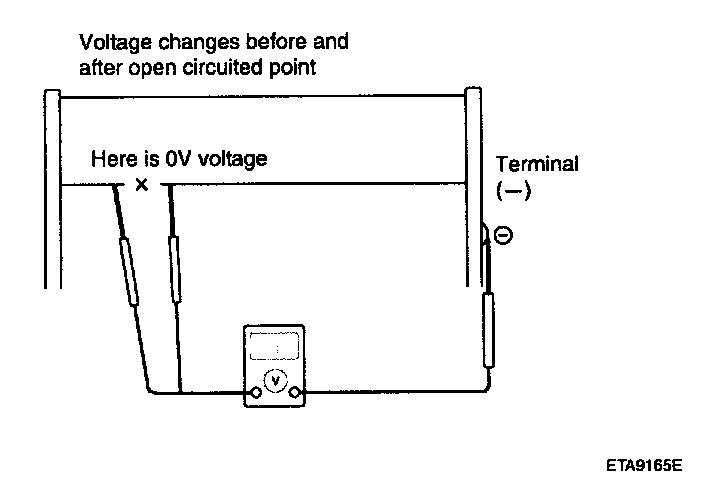 3. If a heater line is burned out between the center point and (-) terminal, the voltmeter will indicate 0 V