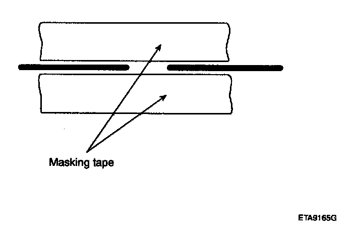 Wipe the glass adjacent to the broken heater line, clean with silicone remover and attach the masking tape as shown. Shake the conductive paint container well, and apply three coats with a brush at intervals of about 15 minutes apart. Remove the tape and allow sufficient time for drying before applying power. For a better finish, scrape away excess deposits with a knife after the paint has completely dried. (Allow 24 hours).