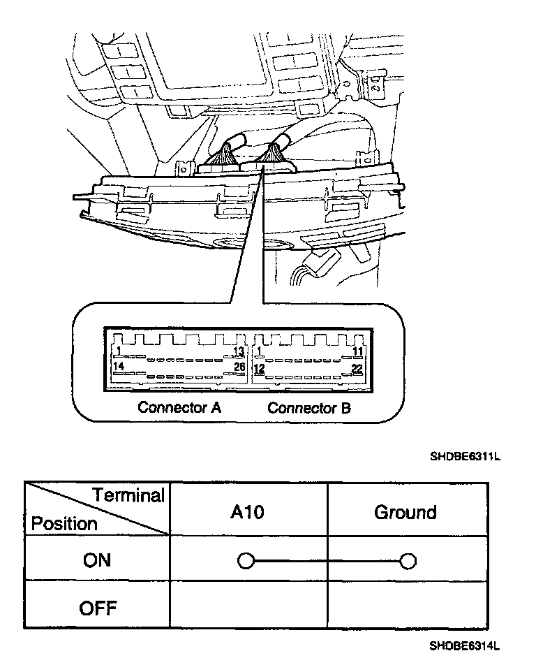 5. Using an ohmmeter, inspect the continuity between the terminals after removing controller.