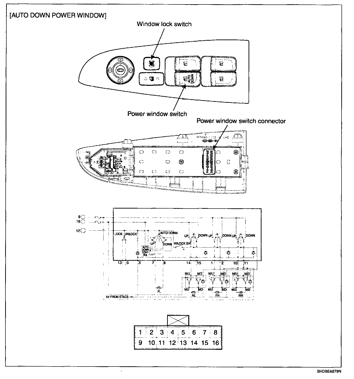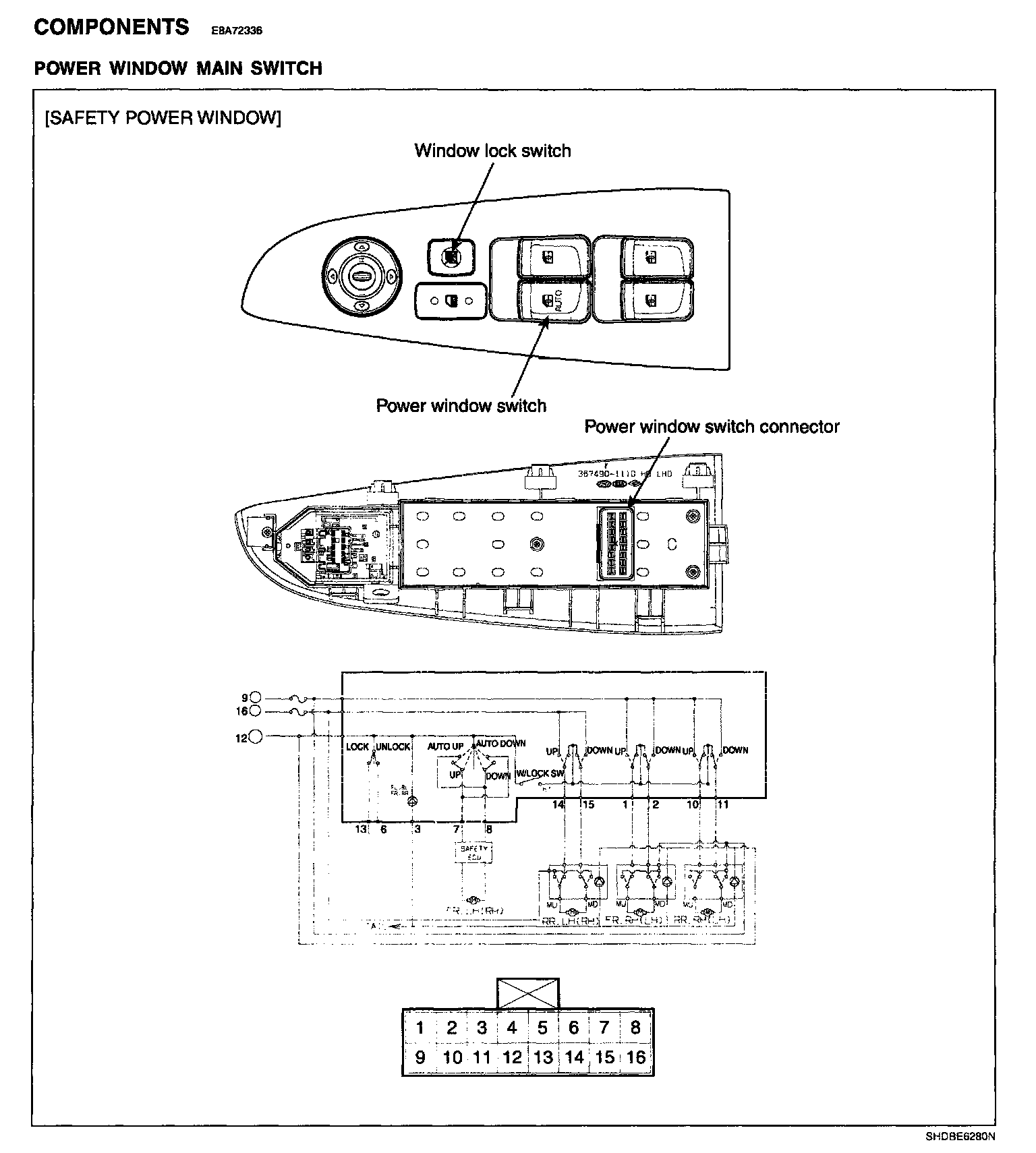 Power Window Main Switch (Auto Down Power Window) - Components: